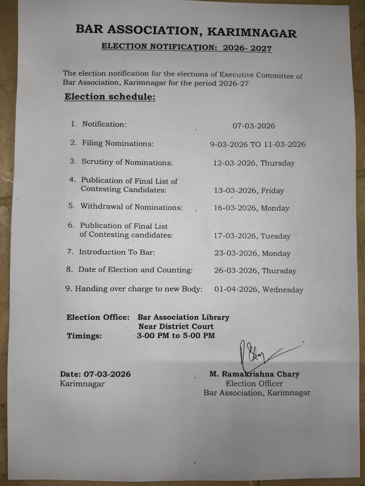 The Bar Association of Karimnagar has been serving the legal community since its establishment, promoting the highest standards of professional conduct and providing essential resources to legal practitioners across the district.